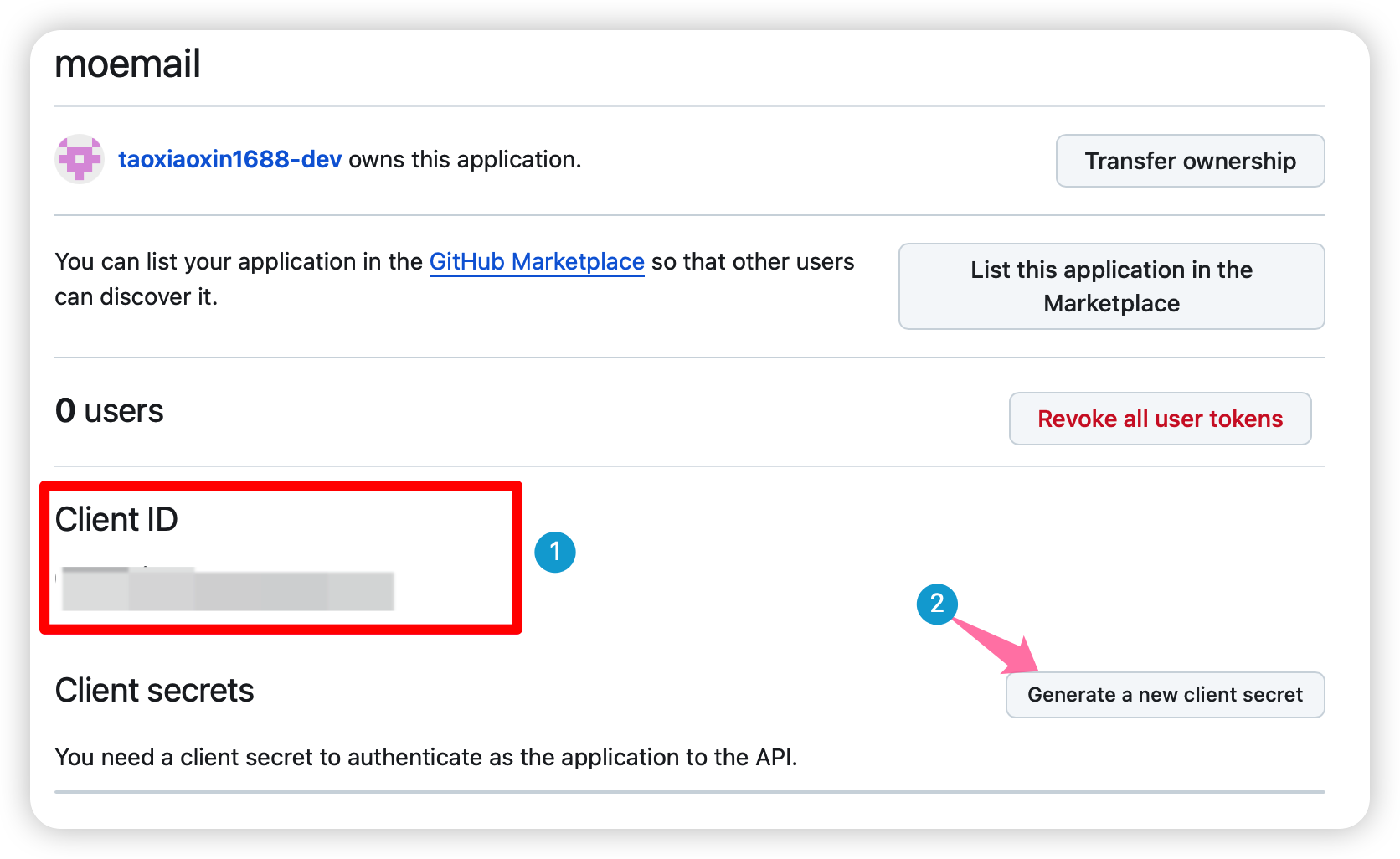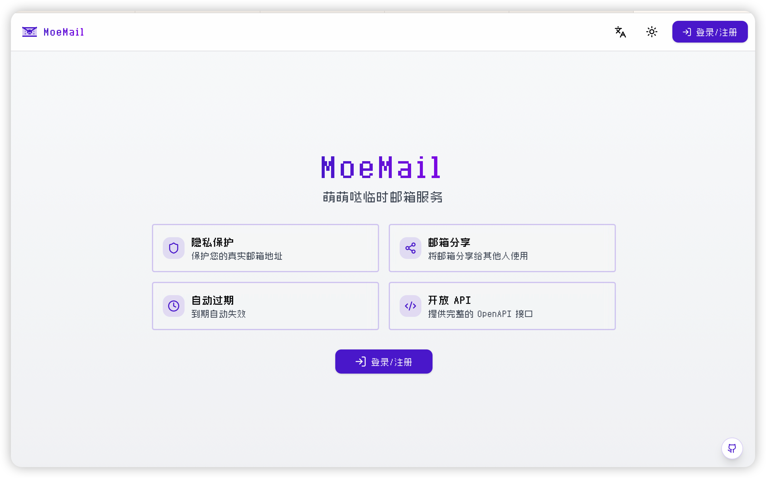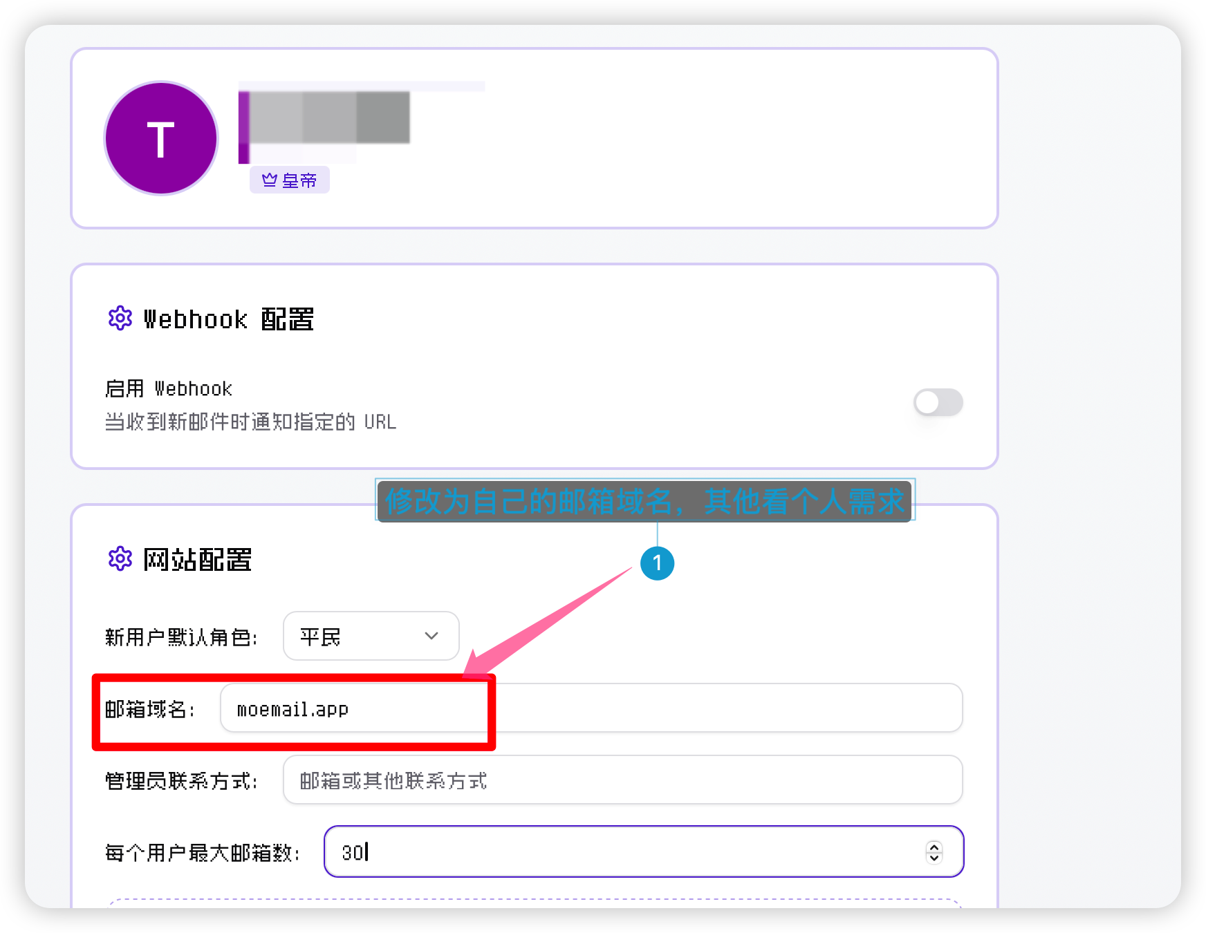 | Homepage URL | 网站自定义域名,用于访问 MoeMail ,填写你刚刚上面申请的域名,如https://<your-domain> |