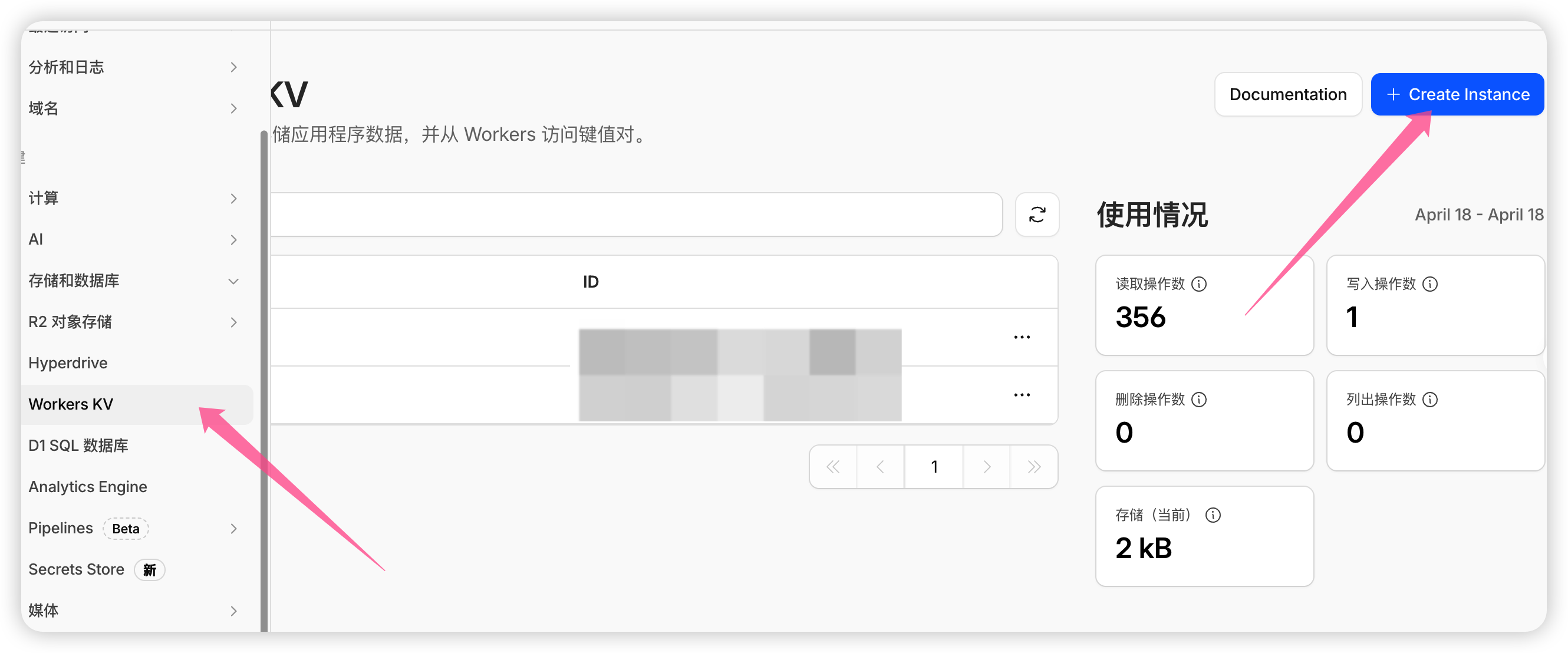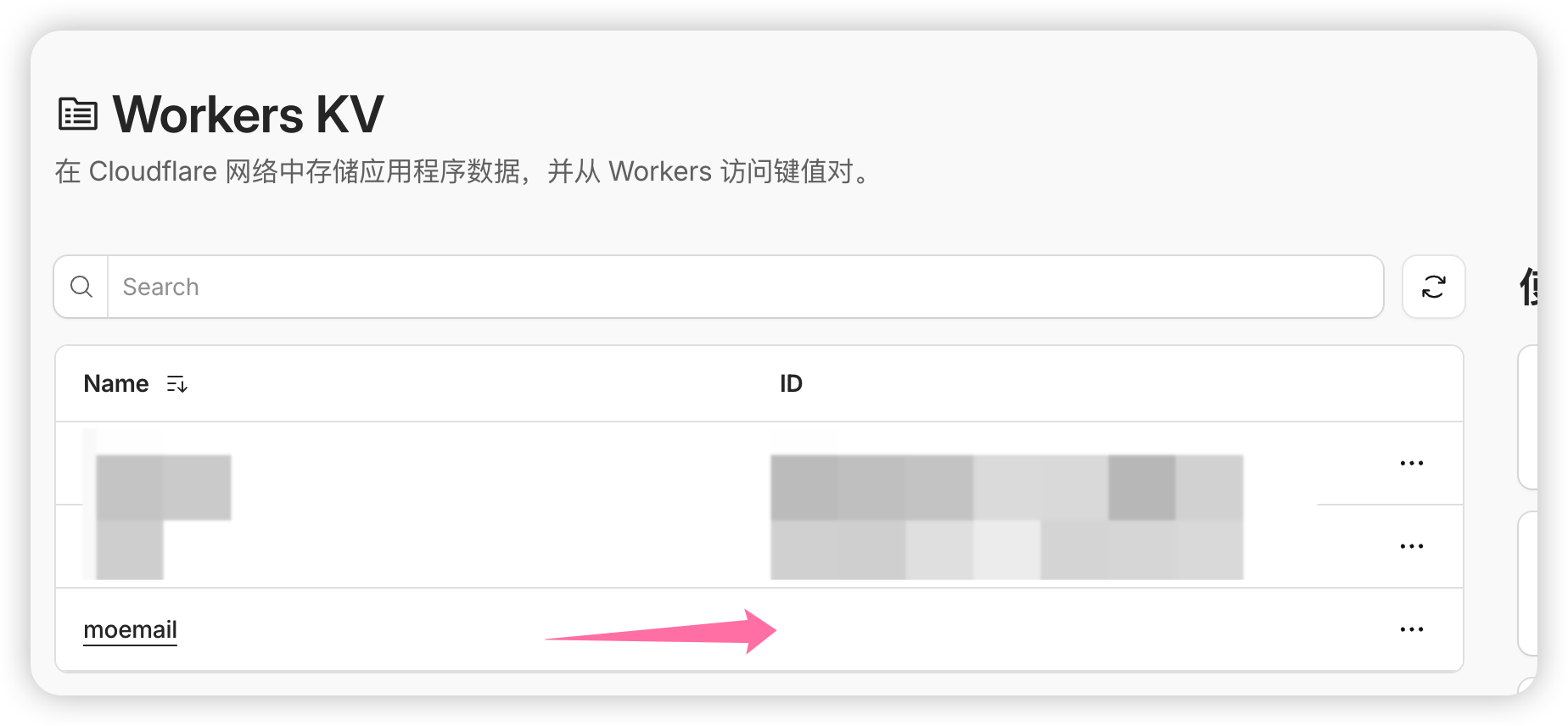 选择 “存储与数据库” → “KV”,创建一个 KV 命名空间(例如:moemail)
