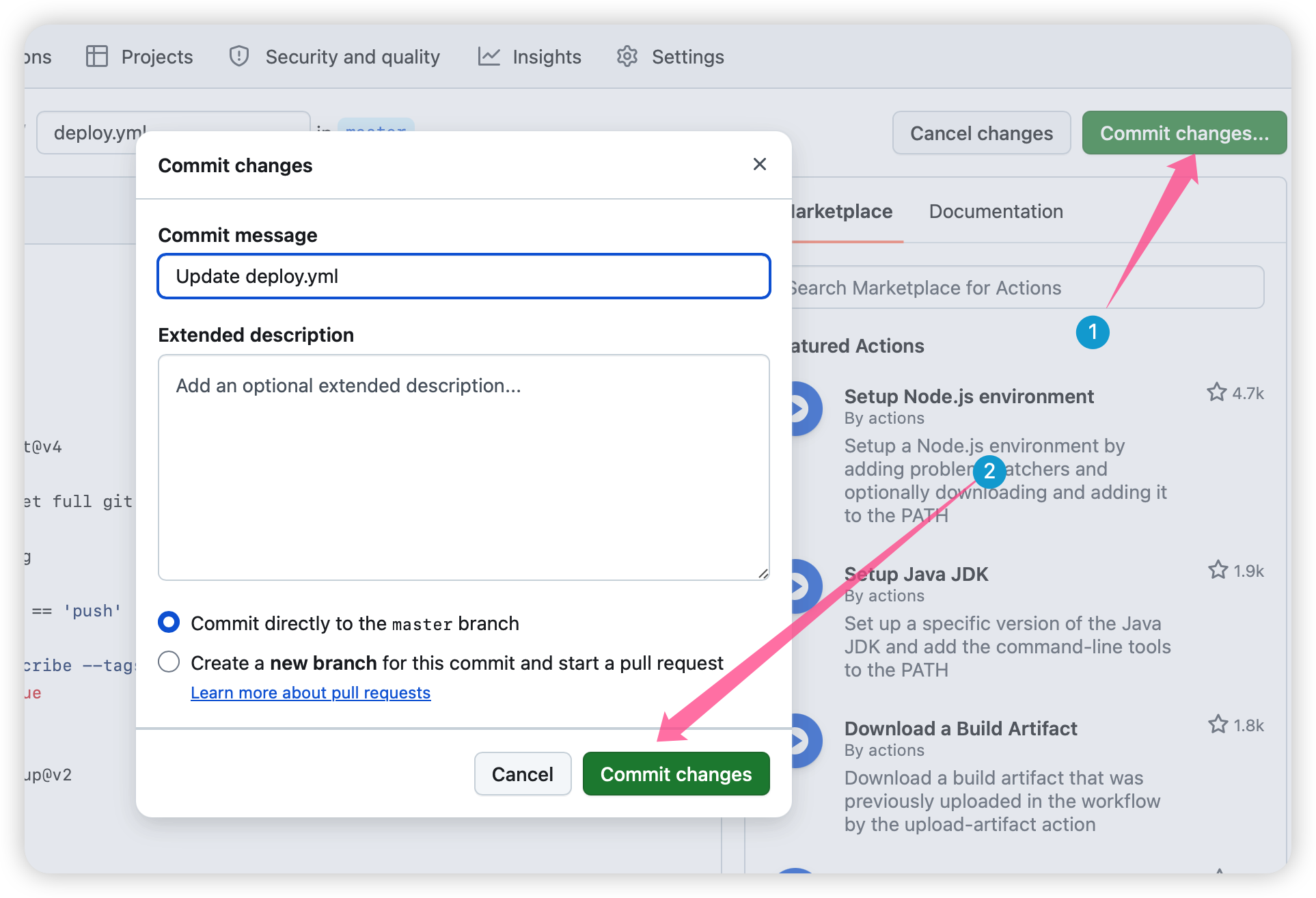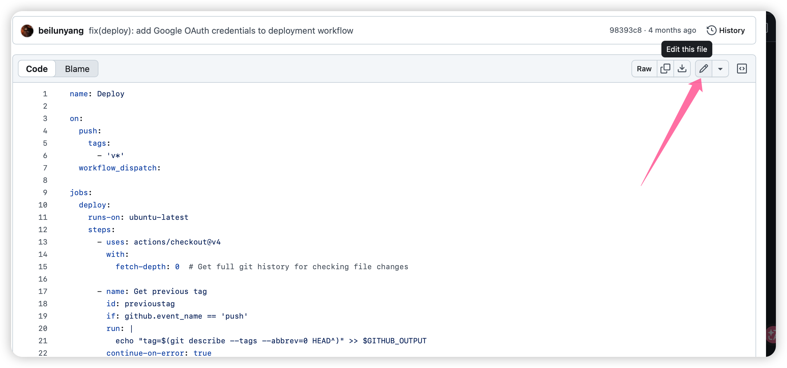 修改文件下的如下/.github/workflows 路径下的deploy.yml35行代码
