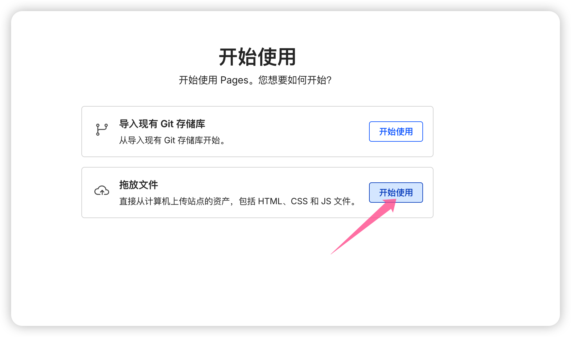 暂时跳过项目部署按钮,不需要上传任何文件以及点击“部署站点”,之后我们会通过 Github Actions 自动部署,回到Workers 和 Pages查看刚刚创建的项目是否成功。