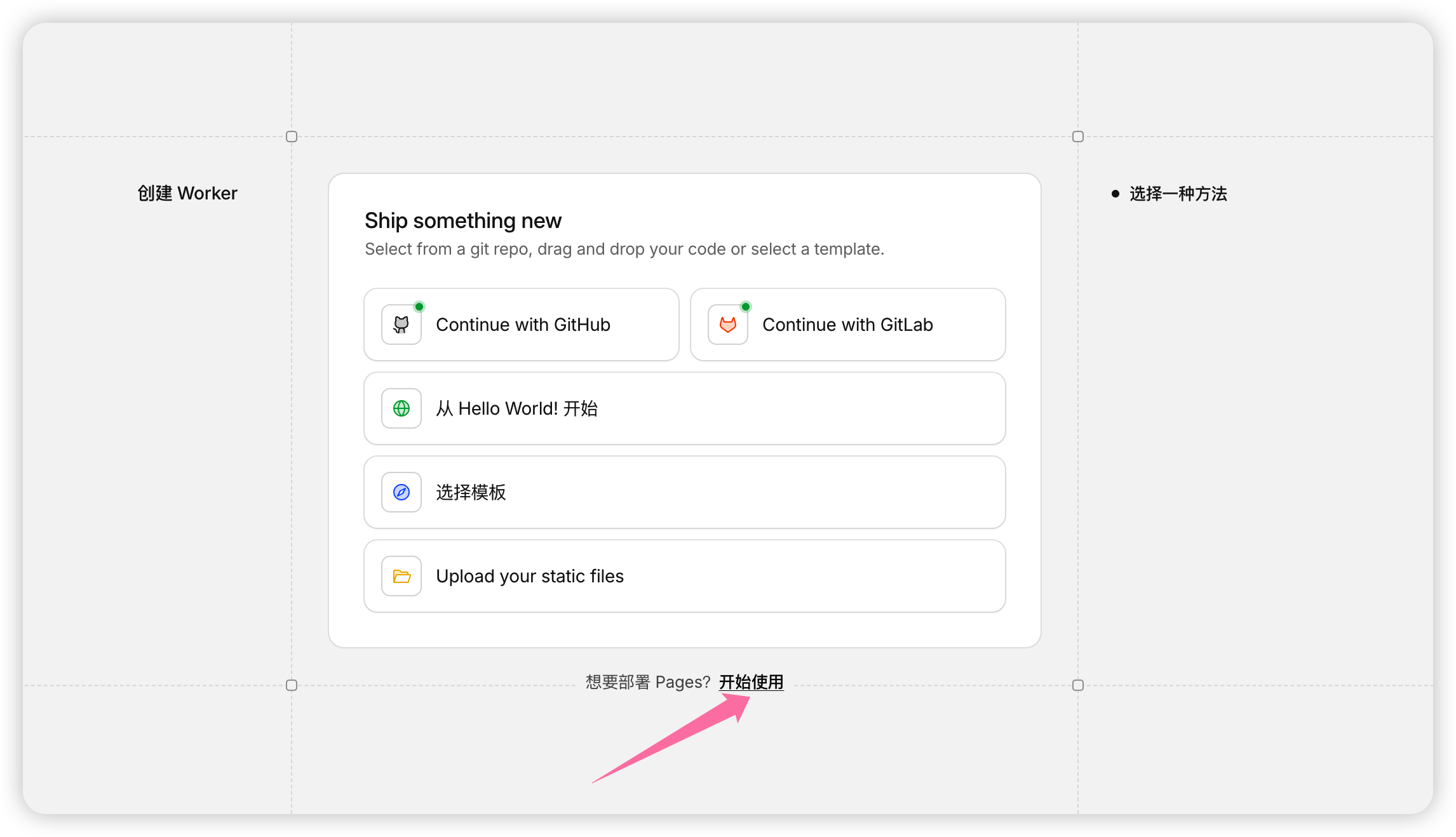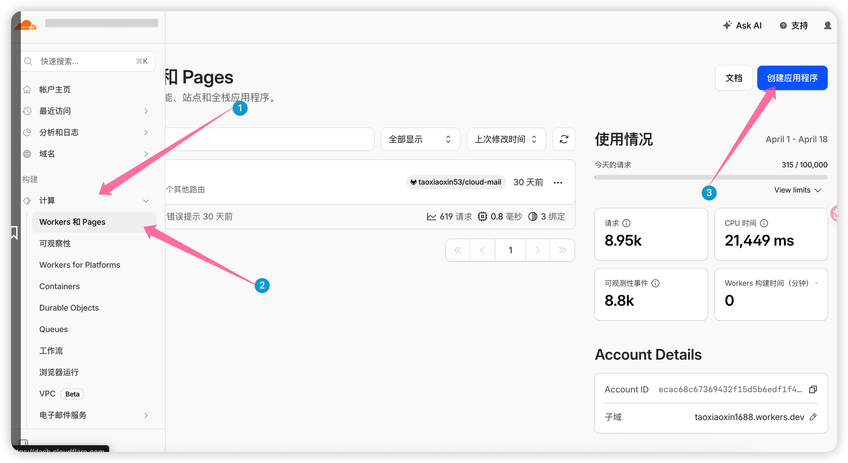 打开 计算Workers 和 Pages 页面 →创建应用程序
