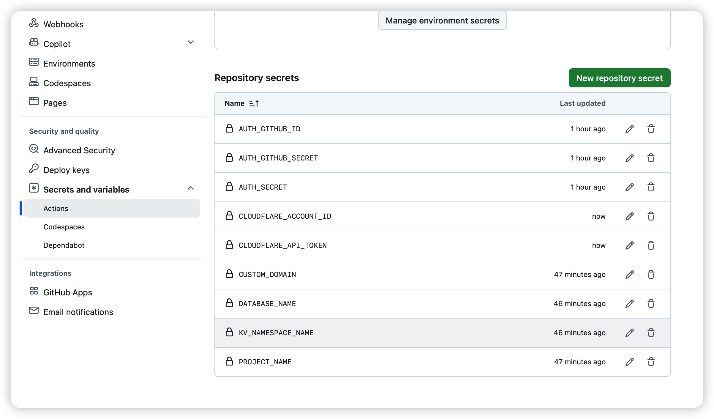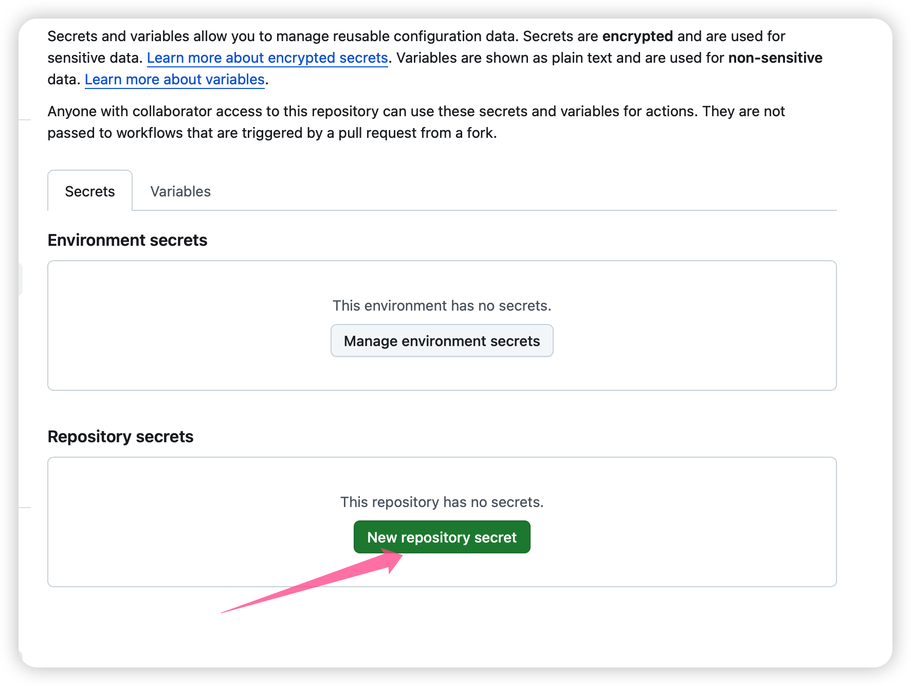 在 GitHub 仓库点击Settings →Secrets and variables →Actions