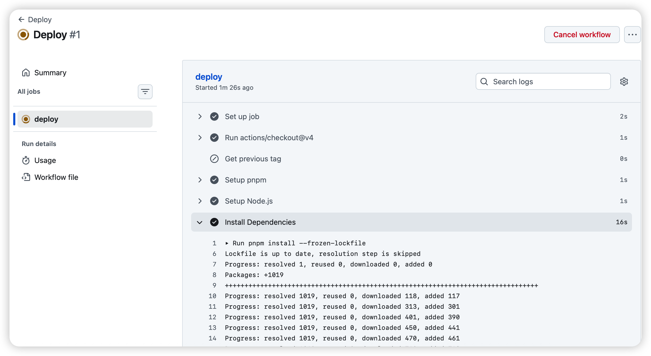 部署进度可以在仓库的 Actions 标签页查看,过程比较长,需要耐心等待一会。