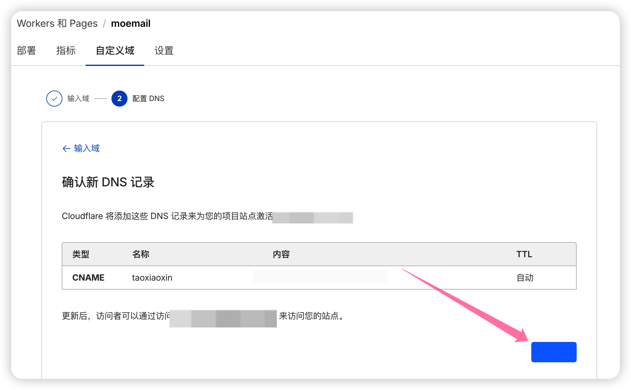 接着点击进入创建的项目,绑定自定义域名,点击激活。