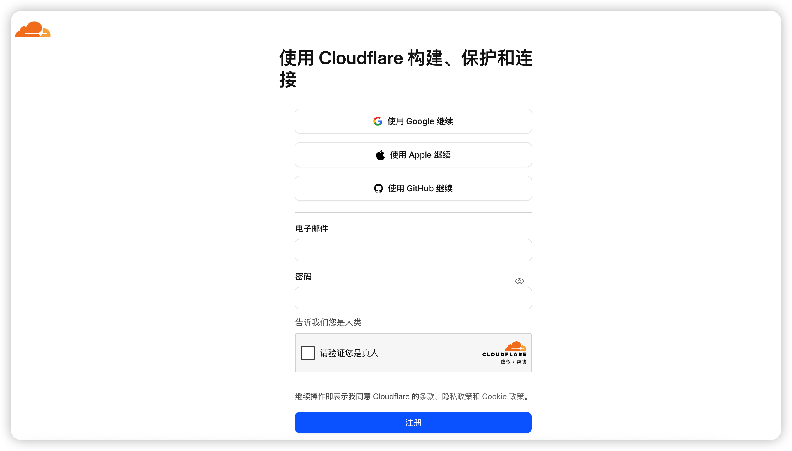 打开 Cloudflare官网 ,如果没有账户可以注册一个。