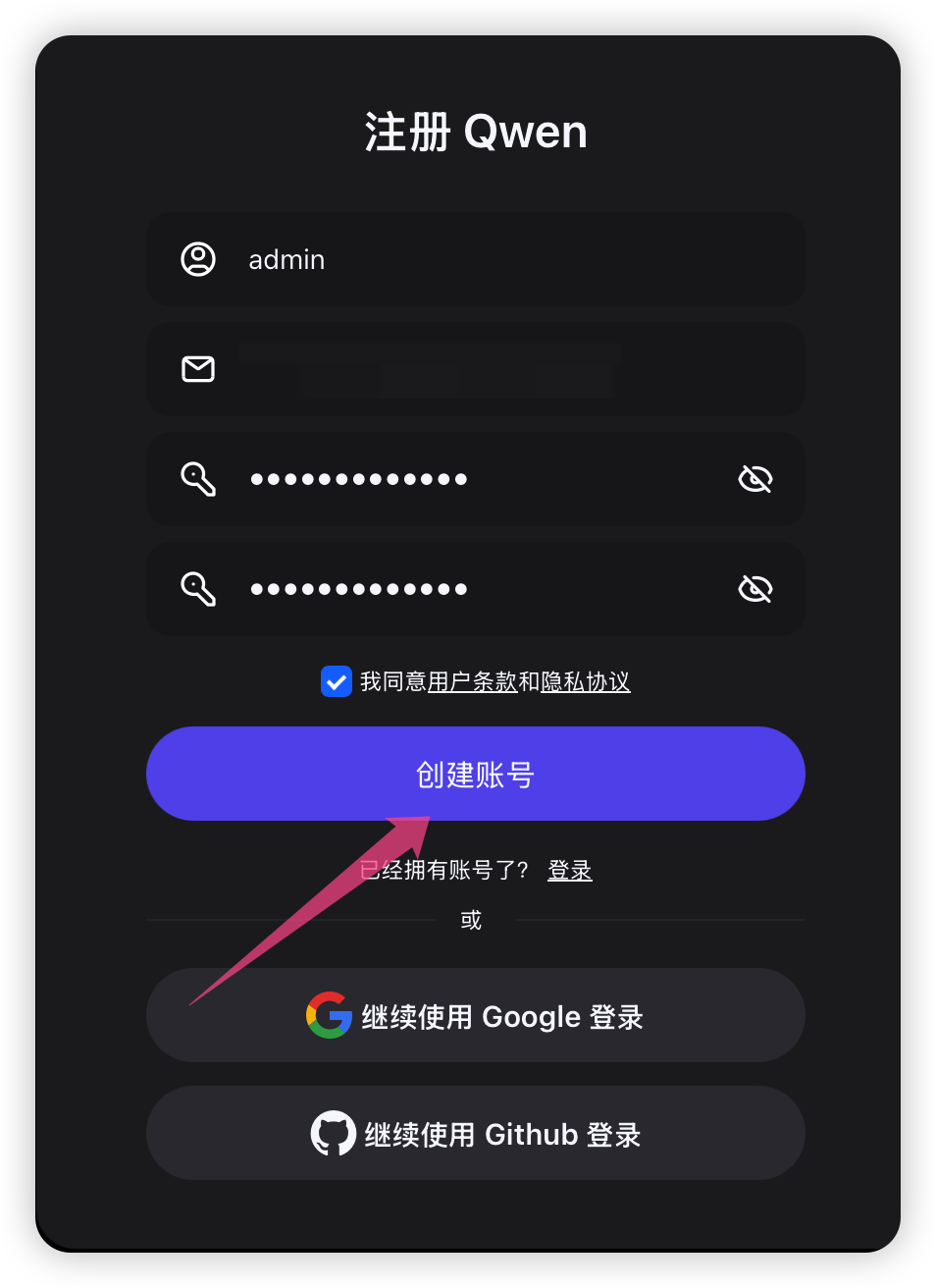 打开通义千问官网:https://chat.qwen.ai,使用我们的邮箱注册一个账号测试。