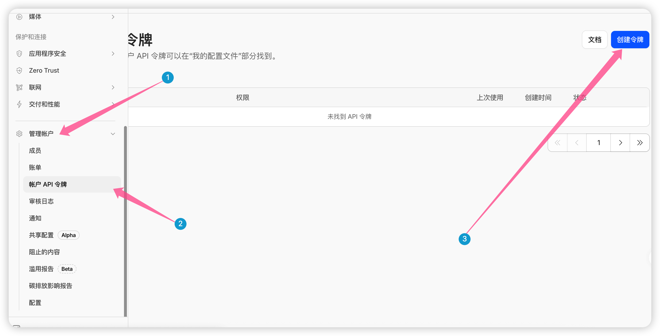 继续回到Cloudflare生成 CLOUDFLARE_API_TOKEN,点击账户→账户API 令牌→创建令牌